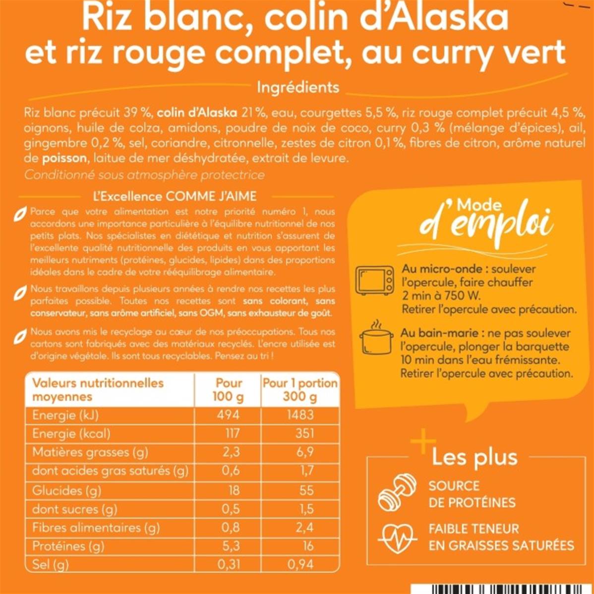 Des morceaux de colin et des courgettes mijotés dans une sauce au curry, noix de coco et relevés d’une pointe de gingembre et de zestes de citron pour une touche de fraicheur. Une recette de poisson savoureuse accompagnée d'un duo de riz blanc et rouge.