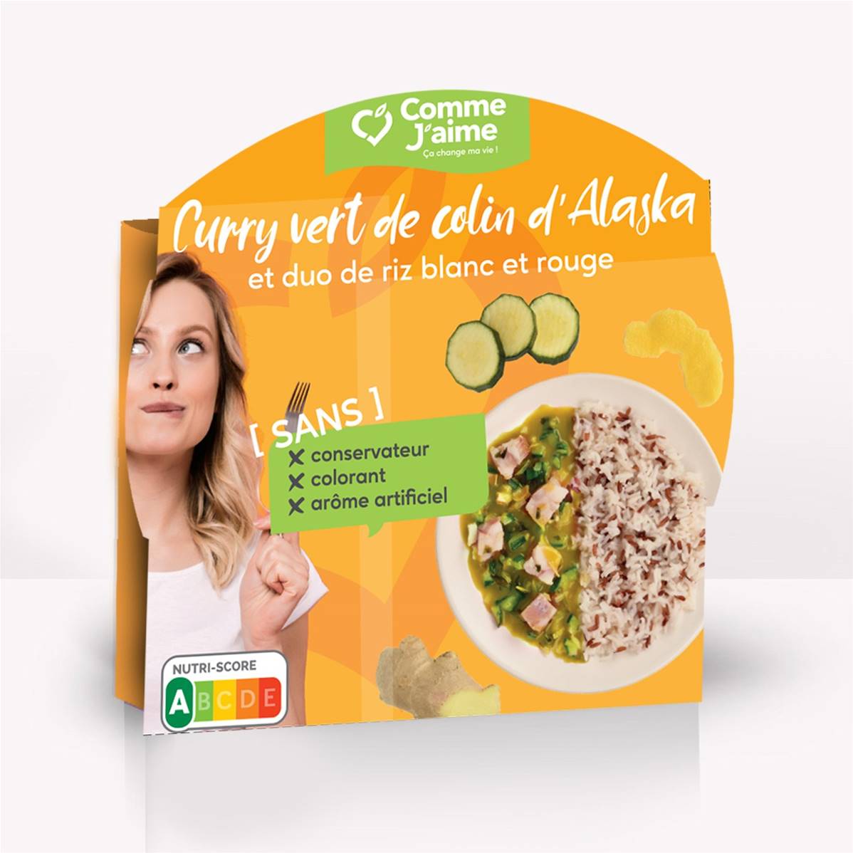 Curry vert de colin d'Alaska et duo de riz blanc et rouge