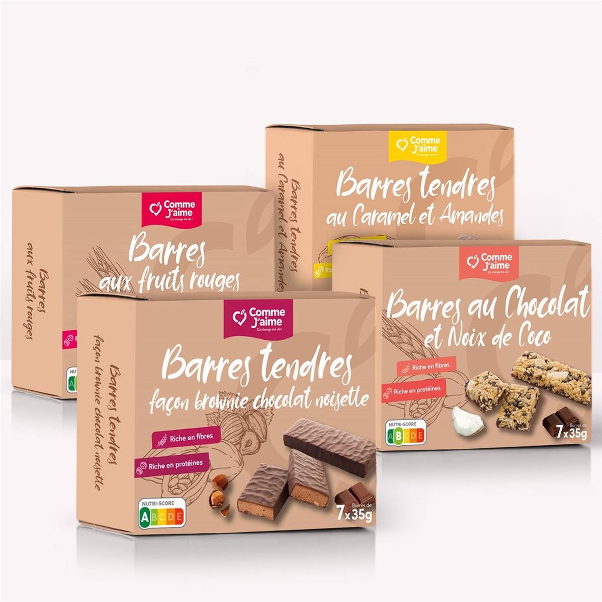des barres au savoureux mélange de flocons d'avoine, de chocolat et de noix de coco. Riches en protéines végétales et en fibres, elles sont idéales pour une pause l'après-midi, équilibrée et gourmande. Barres de 35g en savoir +