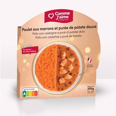 Découvrez notre délicieux poulet aux marrons accompagné d'une onctueuse purée de patate douce. Une rencontre parfaite entre saveurs traditionnelles et douceur réconfortante pour un repas de fêtes équilibré.