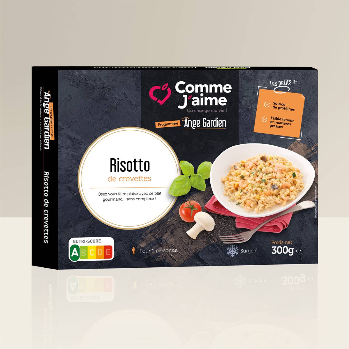 Un risotto onctueux aux crevettes accompagné d'une fondue de poireaux, courgettes et champignons, avec toute la gourmandise de la crème et du parmesan pour un plaisir généreux et réconfortant.
